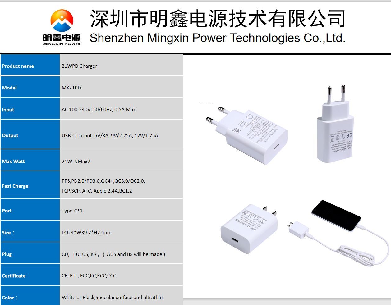 -20WPD快充適用于蘋果高光面超薄 MX21PD過3C CE ETL FCC KC KCC認證