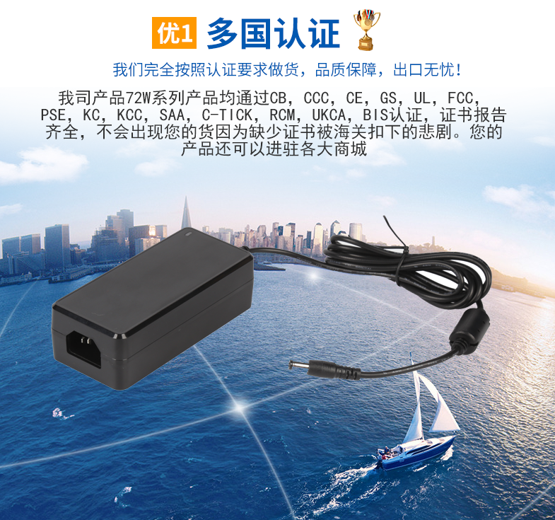 -12V5A/24V3A/19V3.42A電源適配器過UL 3C CE FCC UKCA PSE認證