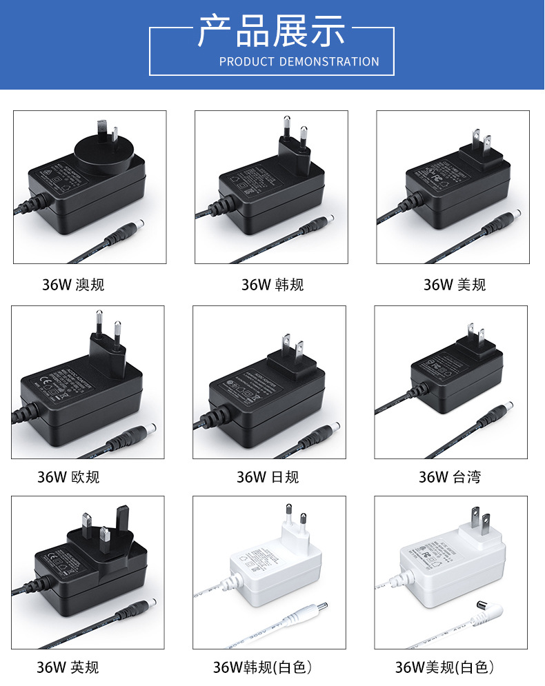 MX36W系列電源適配器 12V3A電源適配器CB UL CE GS KC PSE SAA 3C RCM認證產品采用防火PCB雙面板,電路中運用同步整流方案,提高效率,降低損耗,節能環保,還能提高電源的使用壽命,先進的貼片工藝,焊工整齊、干凈,布局合理,充電器更小,更加輕盈,性能更好。